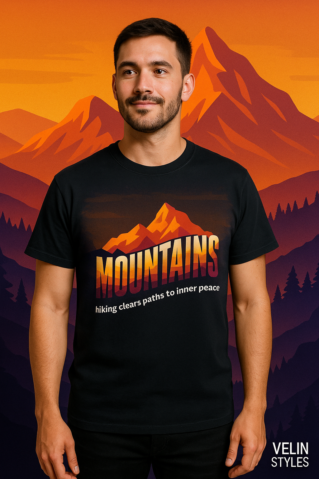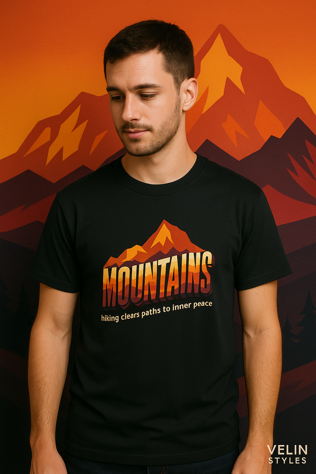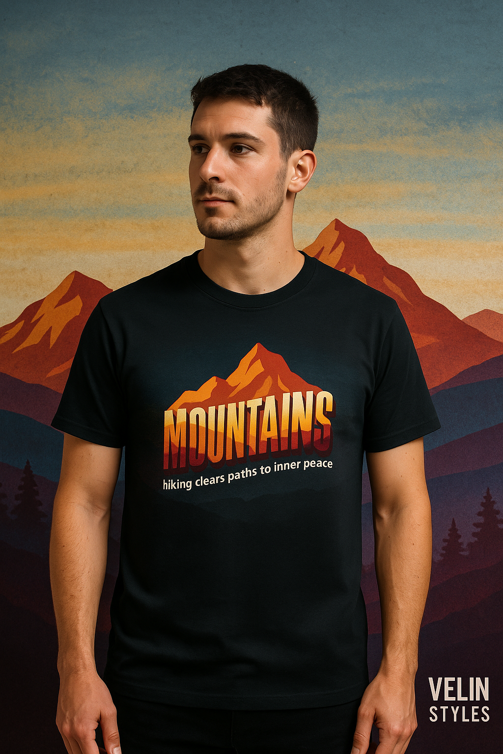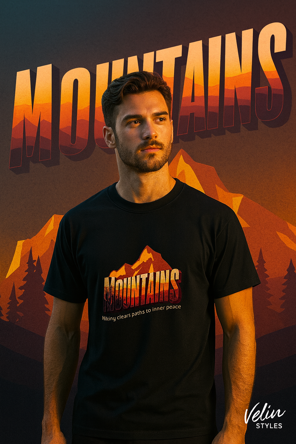 It’s early morning. The world is still quiet. You’re standing at the base of a trail, crisp mountain air filling your lungs, the horizon painted with the first blush of sunrise. You slip on your Velin Styles “Mountains Tee”, and suddenly, you feel connected—not just to your outfit, but to the world around you.